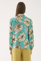 Catherine Regular Fit Yaprak Desenli Standart Boy Takma Kol Gömlek Yaka Turkuaz Renk Kadın Gömlek