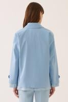 • Bayan MAVİ Eleri Mavi Renk Rahat Kalıp Erkek Yaka Düşük Kollu Trench