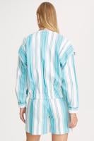 Finlay Rahat Kalıp Bisiklet Yaka Standart Boy Çizgili Desenli Turkuaz Renk Kadın Mont