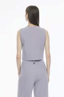 Fredos Rahat Kalıp Kısa Boy Sıfır Kol V-Yaka Mavi Renk Kadın Yelek