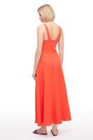 Mercan Kare Yaka Uzun Keten Elbise