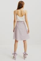 İkonik ekose, rahatlatıcı lila rengi ve kloş etek tasarımı ile bir araya gelerek Angelas etek modeline hayat veriyor. Eğlenceli ve vintage kombinler için Angelas eteğin cazibesinden yararlanmaya ne dersiniz?