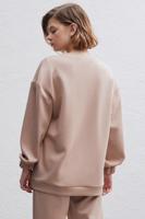 • Bayan PUDRA Astrid Pudra Renk Rahat Kalıp Bisiklet Yaka Düşük Kollu Üst Eşofman