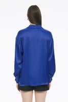 • Bayan Saks Clarys Regular Fit Standart Boy Takma Kol V-Yaka Saks Renk Kadın Gömlek
