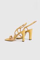 İnce bantlı,dıstan tokalı,kare burunlu,içi ve dışı gercek deri sandalet. Ürün içeriği:%100 Gerçek deri dış malzeme ve astar Taban:Neolit Topuk yüksekliği:9.5 cm