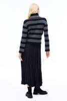 Siyah rengin sofistike şıklığını yansıtan bu etek, yüksek bel detayı ve rahat kalıbıyla konforlu bir kullanım sunar. Midi boy ölçüsüyle modern bir duruş kazandırırken sade tasarımı sayesinde hem günlük kombinlerde hem de ofis stilinde kolayca tercih edilebilir. Gardırobunuzun zamansız parçalarından biri olmaya adaydır.