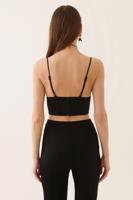 • Bayan SİYAH Ambers Slim Fit V-Yaka Siyah Renk Kadın Crop Bluz