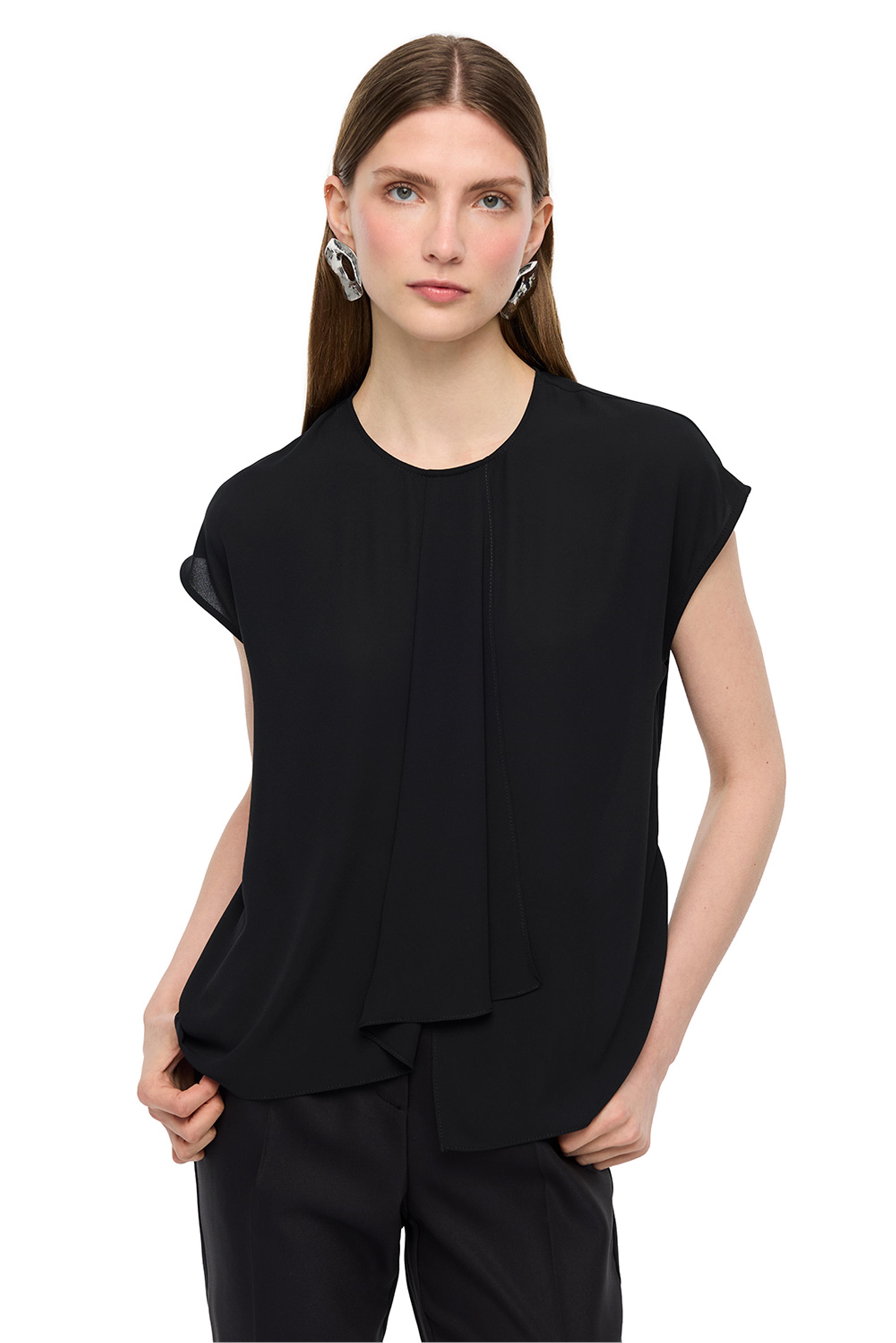 Siyah Ametist Rahat Kalıp Bisiklet Yaka Bluz