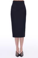 • Bayan SİYAH Siyah Yüksek Bel Slim Fit Diz Altı Etek