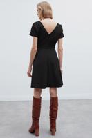 Anke Regular Fit Kayık Yaka Diz Üstü Siyah Renk Elbise