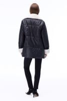 Awans Regular Fit Diz Üstü Takma Kol Gömlek Yaka Siyah Mont