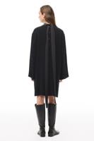 Mini boy kesimiyle enerjik bir duruş kazandıran siyah elbise, bağlamalı yaka ve uzun kol detayıyla şıklığı ön plana çıkarır. Regular fit kalıbı sayesinde günlük ve özel kombinlerde rahatlıkla tercih edilebilir.