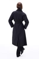 • Bayan SİYAH Capellas Regular Fit Uzun Boy Düşük Kollu Erkek Yaka Siyah Trençkot