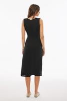Celans Regular Fit Midi Boy Sıfır Kol V-Yaka Siyah Renk Elbise