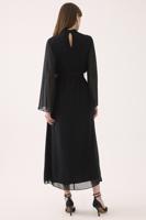 • Bayan SİYAH Dixie Regular Fit Maxi Boy Takma Kol Yarım Dik Yaka Siyah Renk Elbise