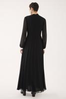 Dixie Regular Fit Uzun Boy Takma Kol Bağlamalı Yaka Siyah Ekru Renk Elbise