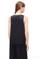 Siyah U-Yaka Askılı Düz Bluz