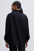 Guido Rahat Kalıp Yarım Dik Yaka Standart Boy Siyah Renk Kadın Eşofman Üst