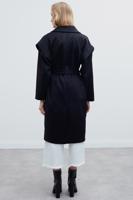 Hilde Rahat Kalıp Erkek Yaka Midi Boy Siyah Renk Kadın Kaban