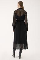 • Bayan SİYAH Holly Regular Fit Uzun Boy Takma Kol Dik Yaka Siyah Renk Elbise