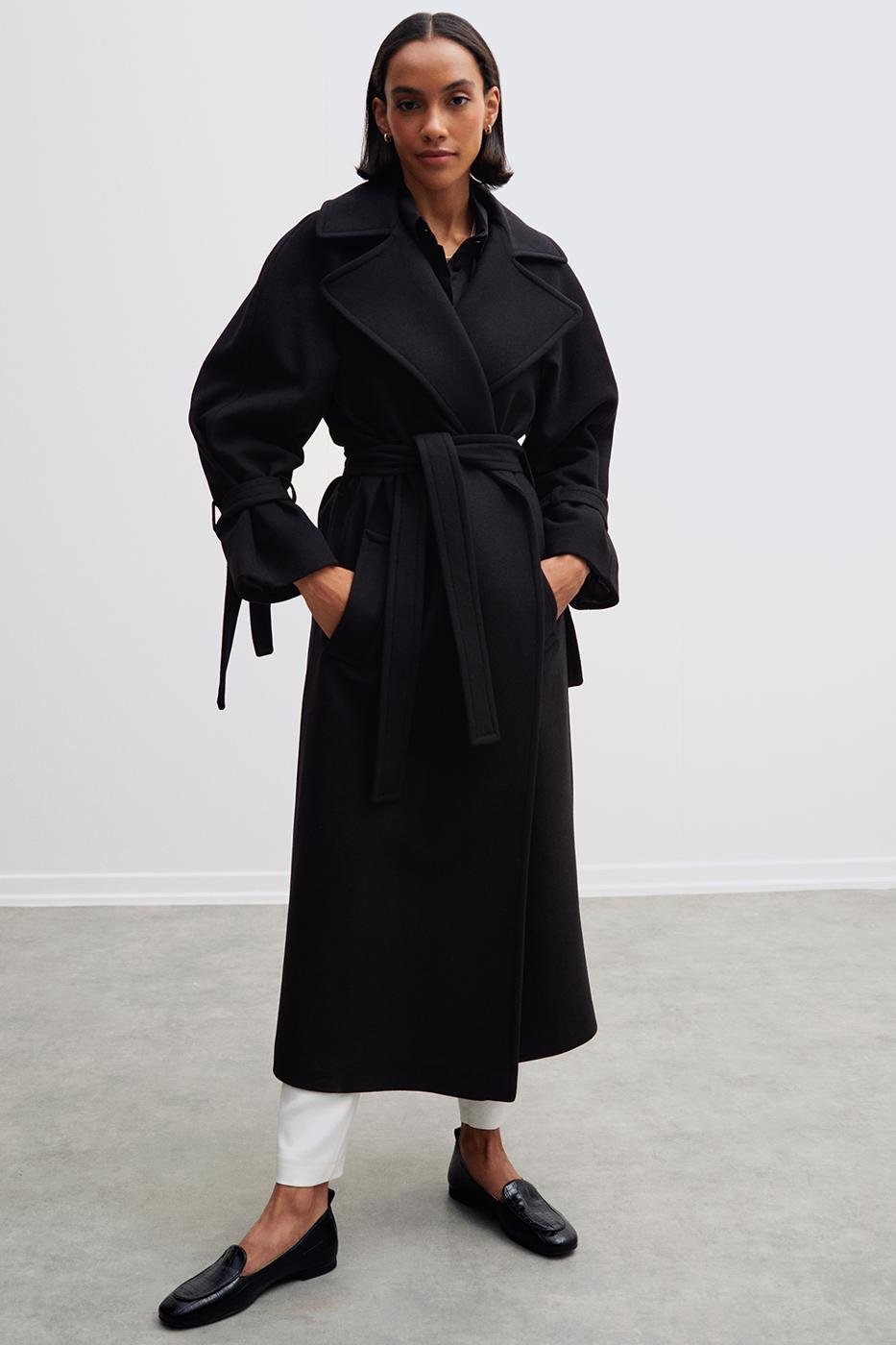 • Bayan SİYAH Jarne Rahat Kalıp Erkek Yaka Bilek Boy Siyah Renk Kadın Kaban