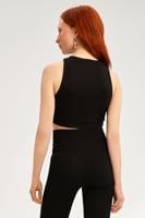 Kady Slim Fit Yuvarlak Yaka Siyah Renk Kadın Crop Bluz