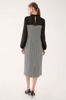 Kelin Regular Fit Midi Boy Takma Kol Yarım Dik Yaka Siyah Beyaz Renk Elbise