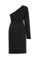 • Bayan SİYAH Lien Regular Fit Degaje Yaka Diz Altı Siyah Renk Triko Elbise