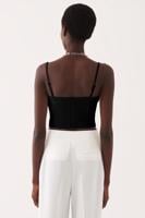 • Bayan SİYAH Martens Slim Fit V-Yaka Askılı Siyah Renk Kadın Crop Bluz