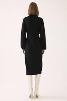 • Bayan SİYAH Mayra Regular Fit Diz Altı Degaje Yaka Siyah Renk Triko Elbise