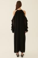Merily Siyah Renk Omuz Detaylı Uzun Kadın Elbise