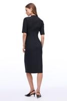 • Bayan SİYAH Siyah V-Yaka Slim Fit Diz Altı Elbise