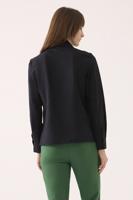 • Bayan SİYAH Nomi Slim Fit Standart Boy Takma Kol Gömlek Yaka Siyah Renk Kadın Gömlek