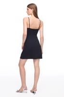 • Bayan SİYAH Siyah V Yaka Mini Saten Görünümlü Elbise