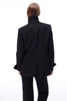 • Bayan SİYAH Sensorial Regular Fit Standart Boy Takma Kol Ceket Yaka Siyah Ceket