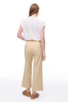 Hafif yapısı ve bilekte sonlanan geniş paça kesimiyle öne çıkan bu pantolon, şehirli stilin modern ifadesi. Yüksek bel detayı, bedeni toparlarken feminen silueti belirginleştirir. Pamuk karışımlı dokusu, gün boyu nefes alabilirlik ve yumuşaklık sunar. Sadelikten gelen zarafetle, ister beyaz bir gömlekle klasik, ister düz bir tişörtle zahmetsiz şıklık yaratır.