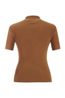 • Bayan TABA İllas Regular Fit Standart Boy Yüksek Boğaz Detaylı Taba Renk Kadın Triko Bluz