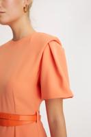 • Bayan TURUNCU Tobien Turuncu Renk Regular Fit Bisiklet Yaka Takma Kol Elbise