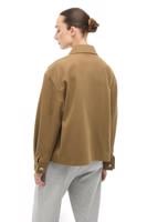 Yağ yeşili tonunun sofistike havasını yansıtan gömlek yaka taşlı kısa ceket, modern kesimiyle şehirli şıklığı ön plana çıkarır. Rahat kalıbı sayesinde konfor sunarken, taşlı detaylarıyla stilinize zarif bir ışıltı katar. Hem gündüz hem de akşam kombinleriniz için ideal bir seçimdir.
