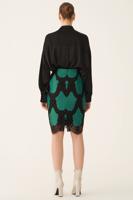 Alaia Slim Fit Diz Altı Dantel Desenli Yeşil Siyah Renk Etek