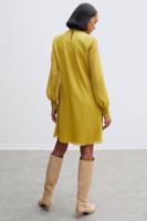 • Bayan YEŞİL Eveline Rahat Kalıp Yarım Dik Yaka Diz Üstü Fıstık Yeşili Renk Elbise