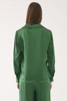 Leatrice Regular Fit Standart Boy Takma Kol V-Yaka Zümrüt Yeşili Renk Kadın Gömlek